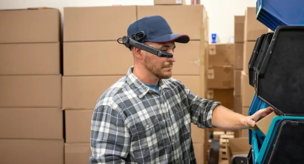 語音控制顯示螢幕整合條碼掃描功能,員工可透過眼角餘光快速查看庫存資料。全天候舒適配戴設計不僅提升作業安全性,也增強員工滿意度;超長續航電池則確保全天候作業不中斷。